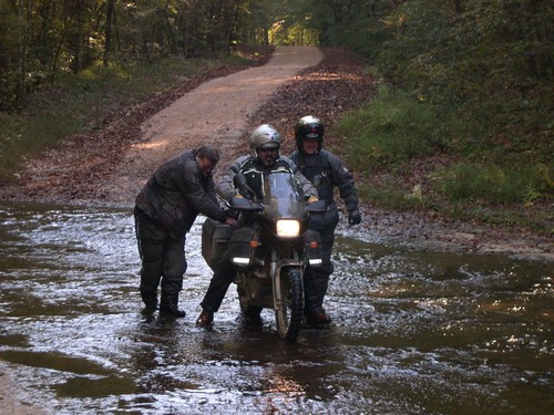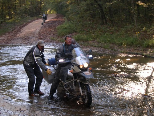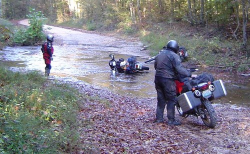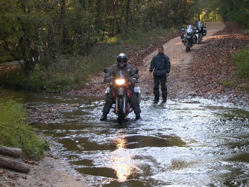 We rode down some beautiful country roads and came to another water crossing that looked like it might have some of that slick moss in it---but it didn't. There ain't nothing to this--piece of cake !! |