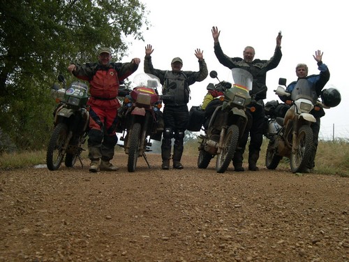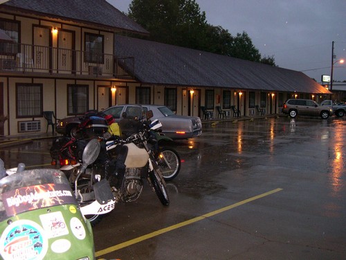 Where's the BMW's I didn't take hardly any pictures today as it was raining pretty hard all day---it quit for just a moment as we took a few pictures just across the Oklahoma border--yes we made it. These guys were such good riding companions--always ready to ride. Joe is the little guy on the right--and yes, Larry is still the big guy !! I'm on the left and Kevin is next to me. Congratulations guys on a great ride and time.