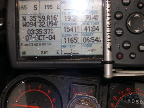 My GPS tripmeter--1,541 miles--elevation